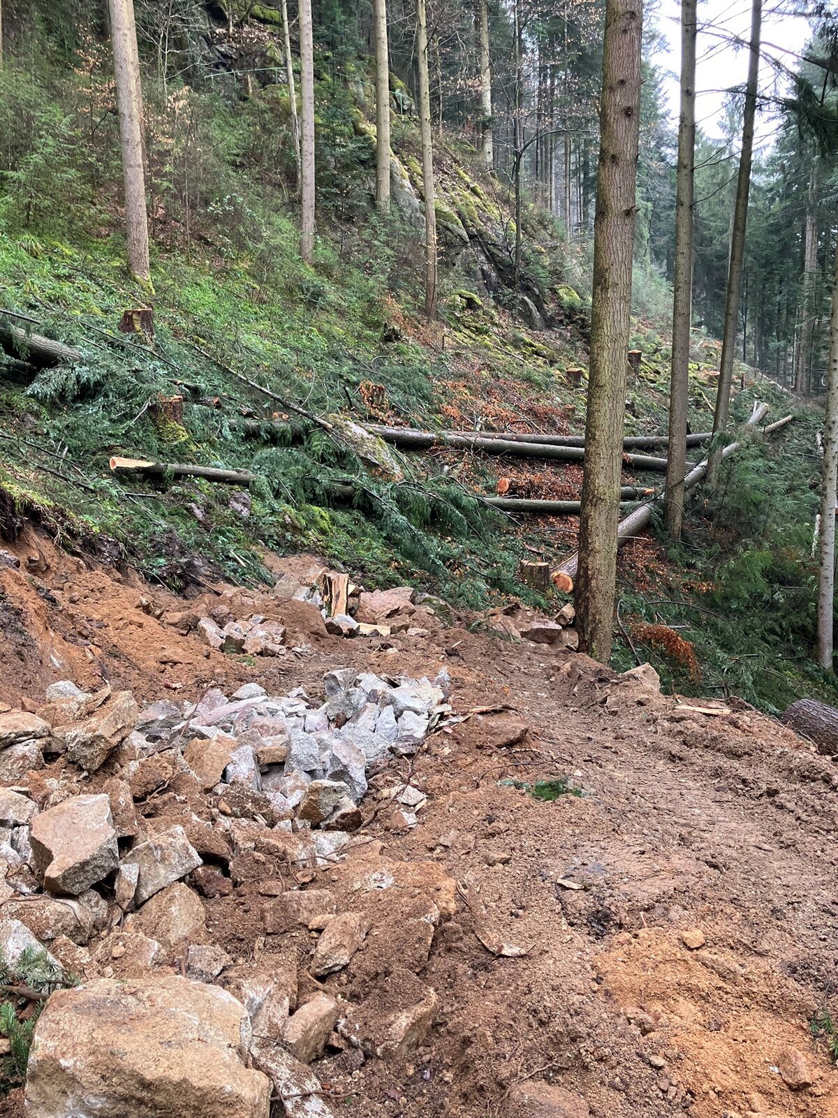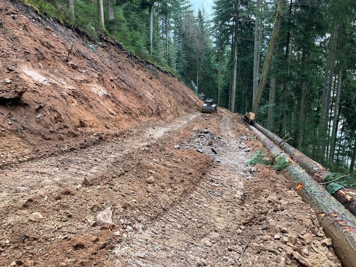 Nach längerer Planung und Vorbereitung ist im Dezember 2025 das Wegebauprojekt „Steuerwand“ angelaufen. Neben dem primären Ziel, bislang unbewirtschaftete Waldflächen forstlich zu erschließen, schafft es für die Waldbewirtschaftung ein deutliches Plus an Arbeitssicherheit und erleichtert die Arbeit in diesen sehr steilen Lagen des Hornberger Stadtwalds. Außerdem sorgt die Erschließung dieses stadtnahen Bereichs für mehr Sicherheit bei möglichen Waldbränden.
