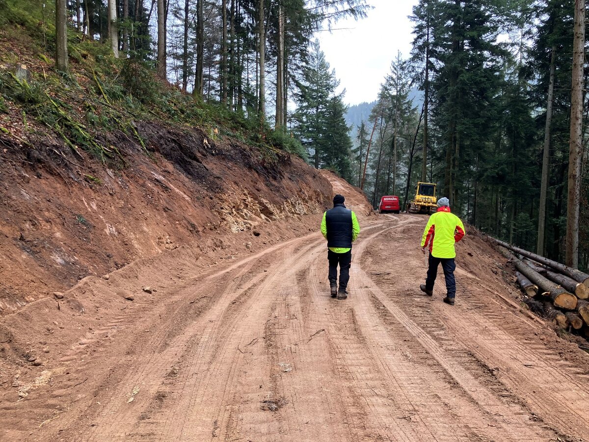 Die Arbeiten sind in zwei Phasen unterteilt. Los eins beinhaltet die Verlängerung des unteren Steuerwandwegs, um ihn für Lkw befahrbar zu machen. Außerdem wird am unteren Steuerwandweg ein neuer Maschinenweg gebaut, damit auch in diesem Bereich eine pflegliche Bewirtschaftung möglich ist. Aktuell wird im Rahmen von Los zwei der Ausbau des Mittleren Steuerwandwegs in Angriff genommen. Den Zuschlag für beide Aufträge erhielt das örtliche Forstunternehmen Klaus Dold. „Die Umsetzung der Planung durch das beauftragte Unternehmen laufen mit großem Augenmaß und absolut professionell“, stellt Revierleiter Martin Flach zufrieden fest. Alle Arbeiten sollen spätestens im Mai abgeschlossen sein.